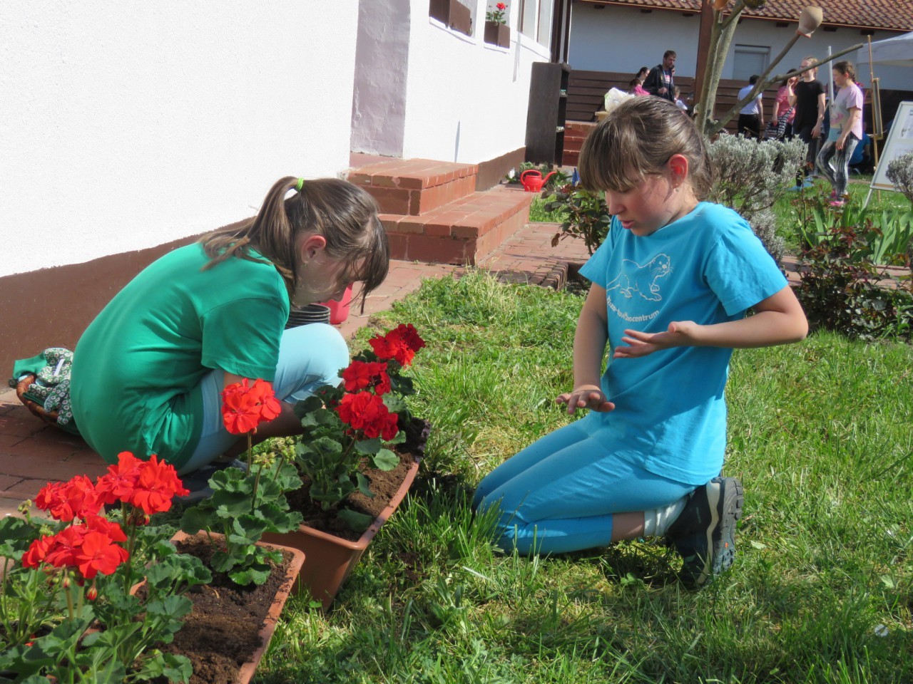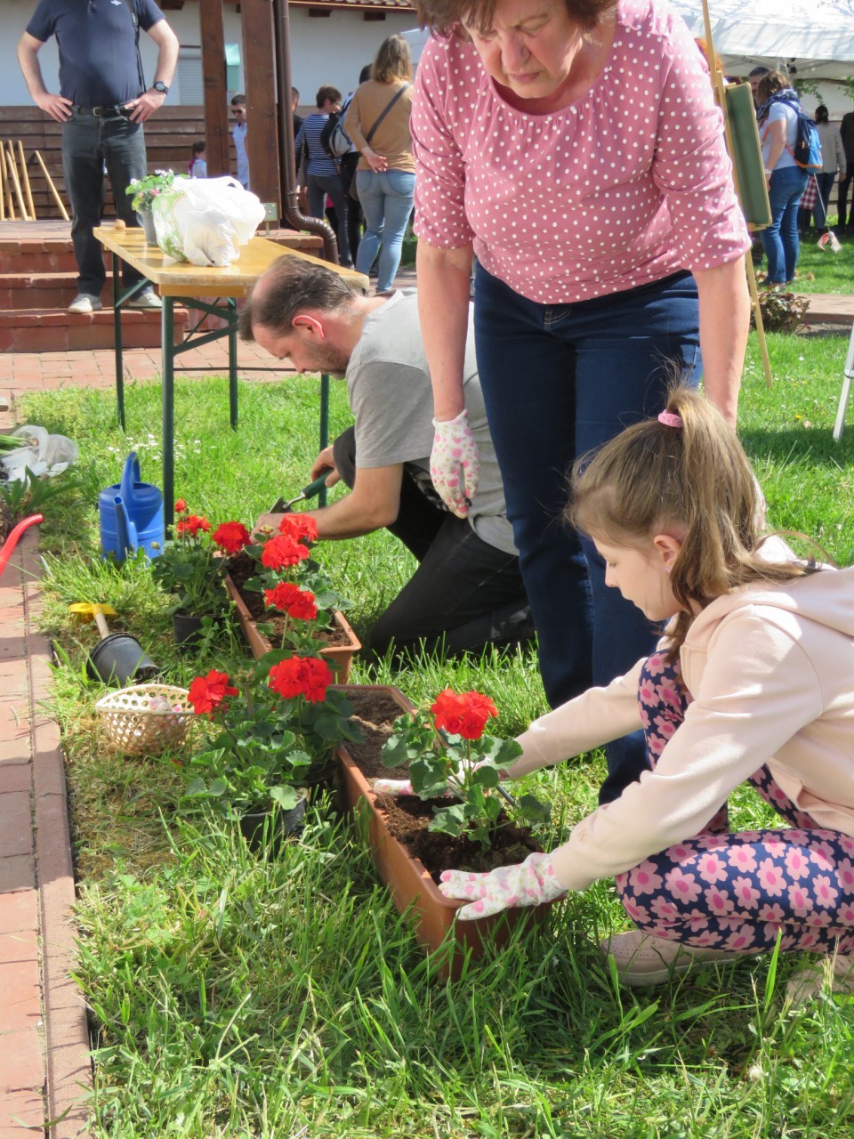 S a Föld napjáról sem megfeledkezve, sokan érkeztek biciklivel, még többen hoztak növényt Növénykollégiumunkba, és a nap végére ismét virágba borult kis tájházunk tornáca, hála a közös virágültetésnek. (Lehet, hogy ebben annak is volt némi szerepe, hogy mindezekért cserébe fabatkát adtunk, amit különféle ajándékokra lehetett beváltani. De a lényegen ez semmit nem változtat.