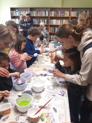 Húsvéti kézműves játszóházban készülhettek az ünnepre azok a gyerekek és szüleik, akik ellátogattak 2022. április 10-én a Tiszaparti Fiókkönyvtárba. A kézműves asztaloknál díszes tojások, húsvéti díszek és még sok más színes, tavaszi ötlet kelt életr...