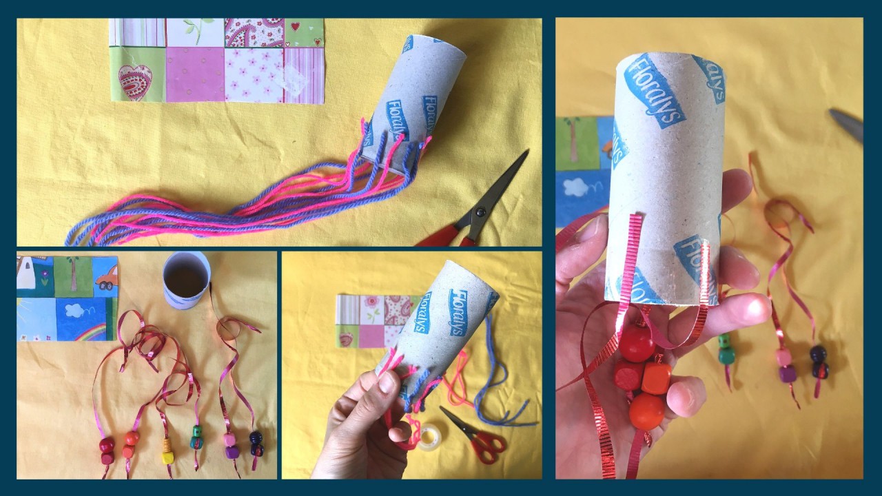 ? Amikor körbeértünk a csíkokkal, akkor ragasszuk rá a gurigára a csomagolópapírt, ez szépen elfedi a csíkok végeit. A felső részére készítsünk két lyukat, ahová fűzzünk egy darab madzagot, így fogjuk tudni fellógatni. Készíthetünk többet is, nálunk jól mutatnak együtt az erkélyen.