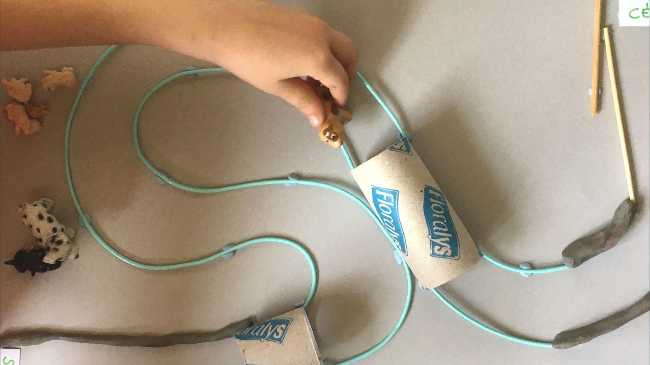 ⚓️ A pályát többféle módon is ki tudjuk alakítani. Mi csak azért csináltuk vegyesen, hogy látszanak a különböző felhasználható anyagok. A gyurma a legegyszerűbb, kicsi gyerekekkel érdemes azt használni, hiszen kígyókat bárki tud sodorni, ezután már csak rá kell nyomogatni a papírra. A startból kiindulva készítsünk el egy kacskaringós utat a célig. Ez azért fog kelleni, hogy a golyó a pályán maradjon.