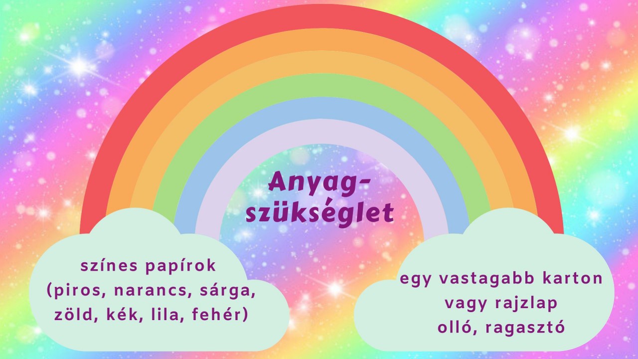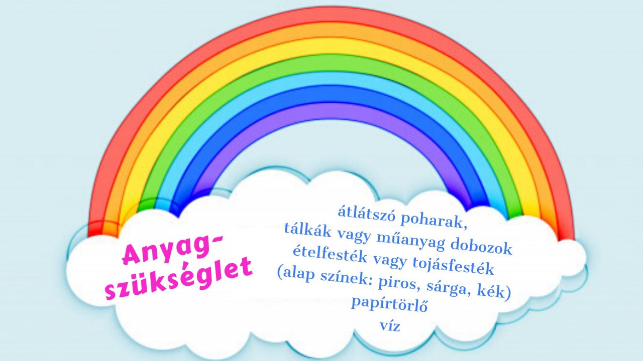 A meséhez kapcsolódva szivárványos játékokat gyűjtöttünk össze erre a hétre, amelyek során alkothattok saját szivárványt és kísérletezhettek a színekkel.