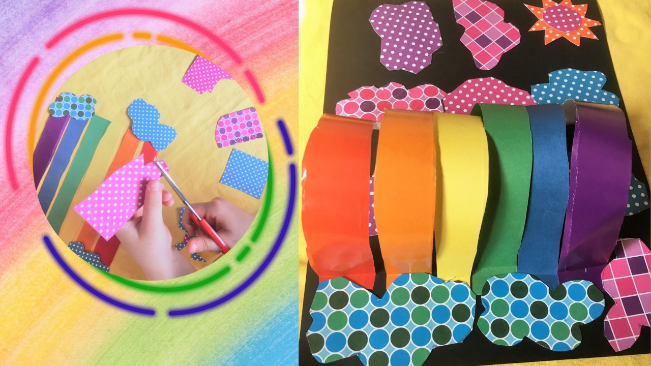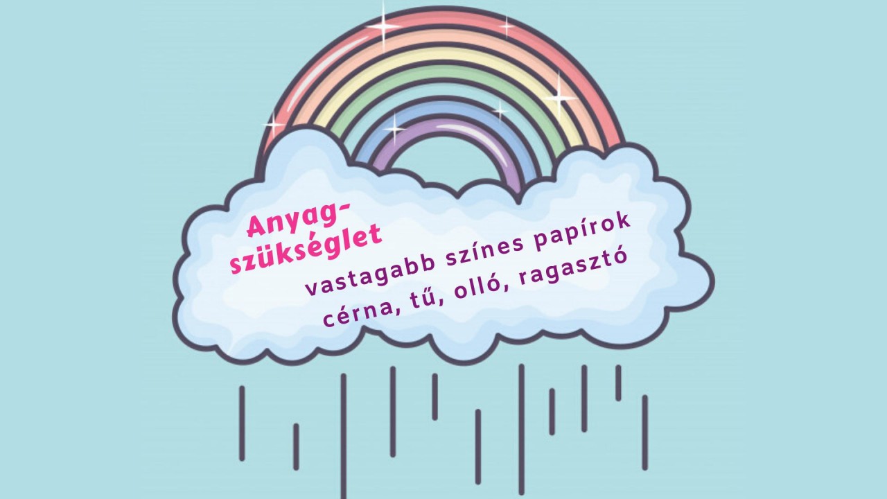 ? Fehér vagy kék papírból felhőket vágunk ki, és a szivárvány tövéhez ragasztjuk. A felhőket vattapamacsokból is meg lehet csinálni, akkor az is térbeli lesz.