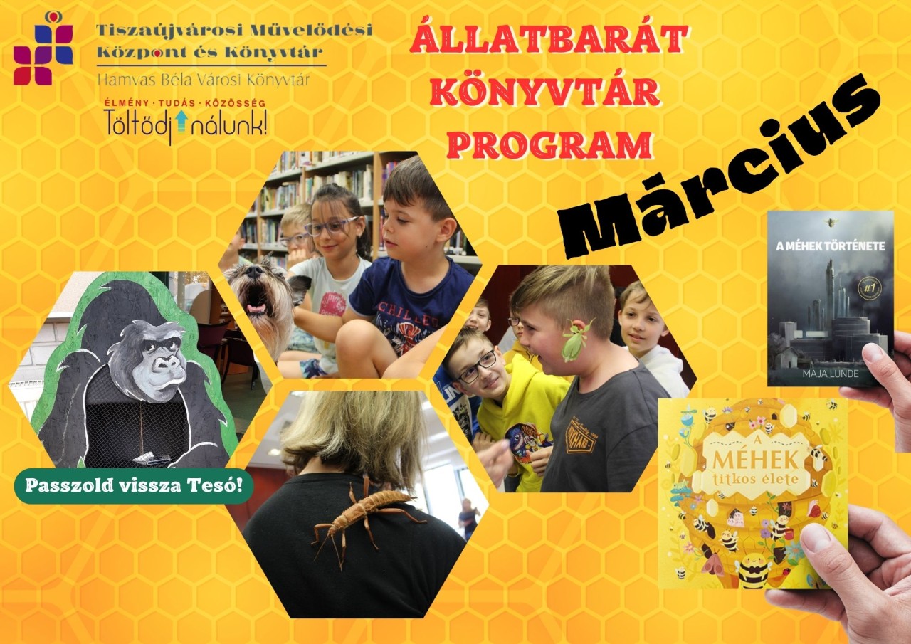 Az Állatvédelmi Oktatásért Alapítvány által meghirdetett program keretein belül elérhetővé tesszük a könyvtárban az Állatbarát Olvasó Kihívás aktuálisan kiemelt könyvét, ösztönözve a gyerekeket arra, hogy teljesítsék a kihívást, miszerint 12 hónap alatt 12 állatokkal vagy állatvédelemmel kapcsolatos könyvet olvassanak el.