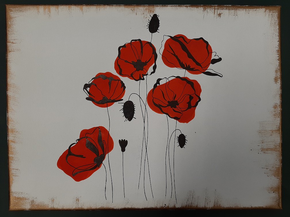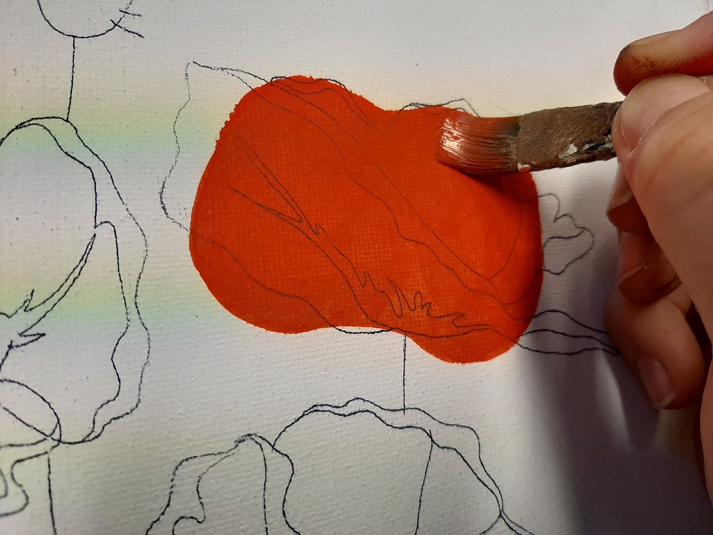 ? Ahol a virágfejek helyezkednek el, oda szabálytalan foltokat festünk, tetszőleges színválasztással.