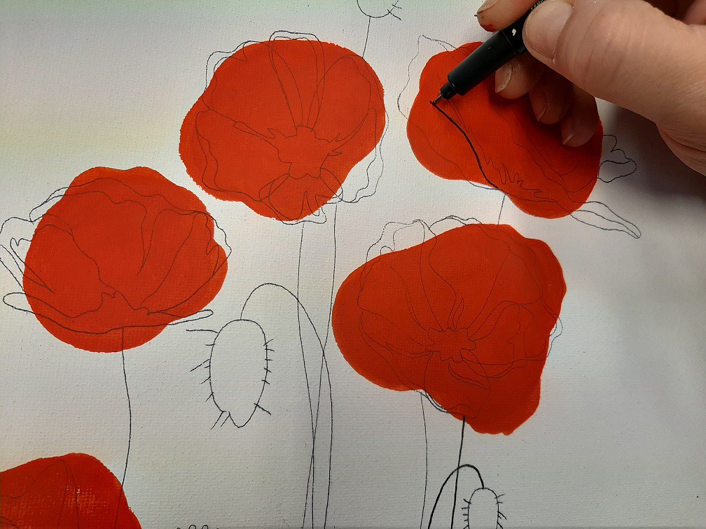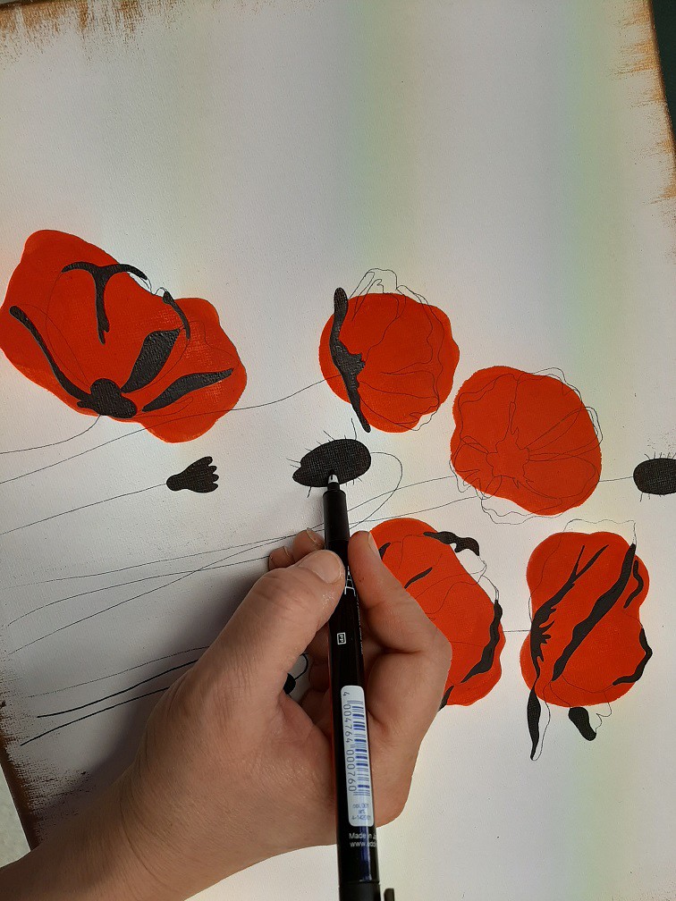 ? Ezután jöhet a vékony filccel való kontúrozás, majd a vastaggal a nagyobb részek kitöltése.