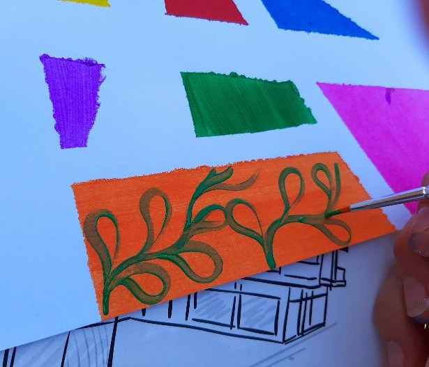 ? Ekkor elővesszük a vékony ecsetet és organikus formákat, növényi motívumokat, tetszőleges mintákat festünk a különböző kimaszkolt részekbe.