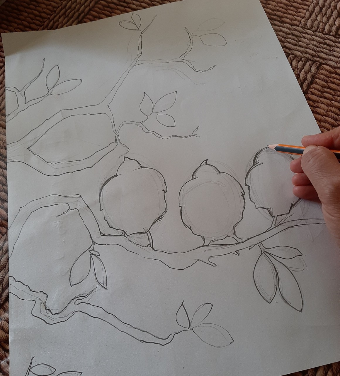 ? Ezután a minta megrajzolása következik. Az interneten számos variációt találtok, én szabadkézzel rajzoltam meg, majd kivágtam. A sablont felhelyezzük a vászonra és odarögzítjük a maszkolófólia segítségével.