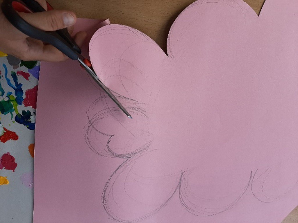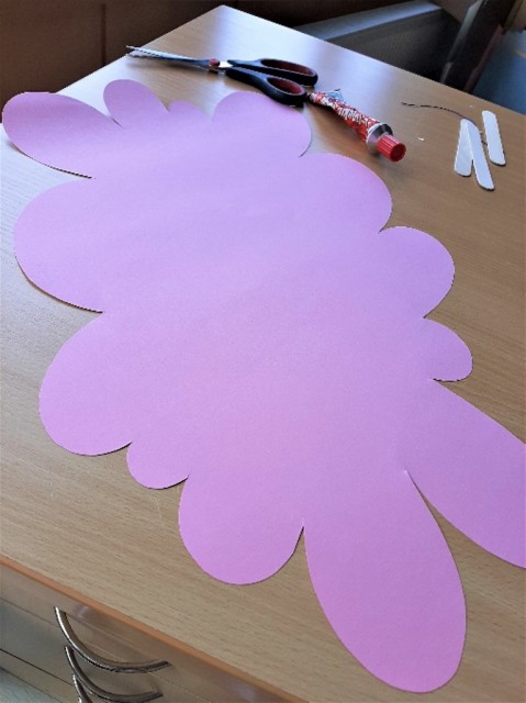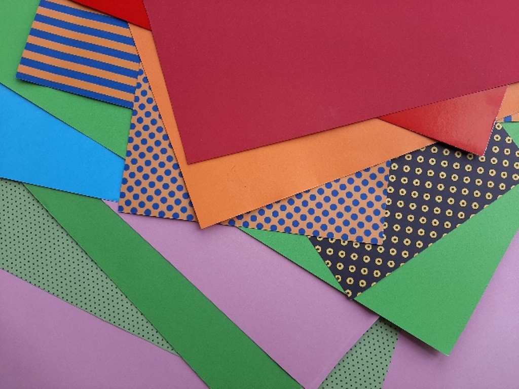 Munkánkat a lapok kiválasztásával kezdjük. A kép rétegeit elkezdjük elkészíteni, a mellékelt képek alapján. A mintákat szabadkézzel rajzoljuk meg, miután kivágtuk, a szélüket alkoholos filccel húzzuk ki.