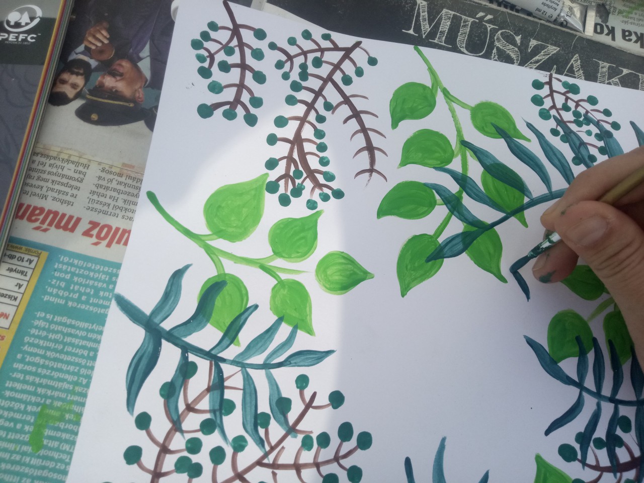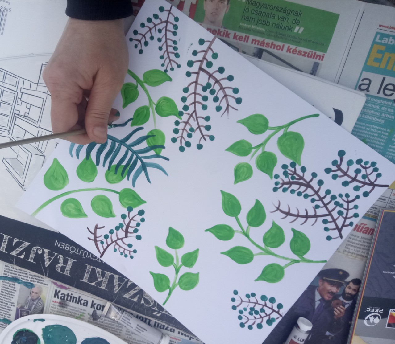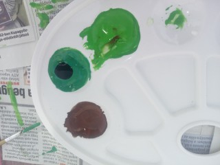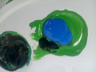 ? A zöld bogyók a már kikevert zöld festék, kék és pici fekete elegye.