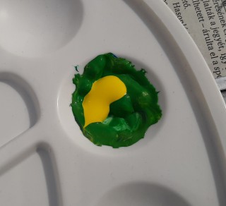 ? A nagy levelű növény zöld és sárga festékből van kikeverve, a képen látjátok a körülbelüli arányt.