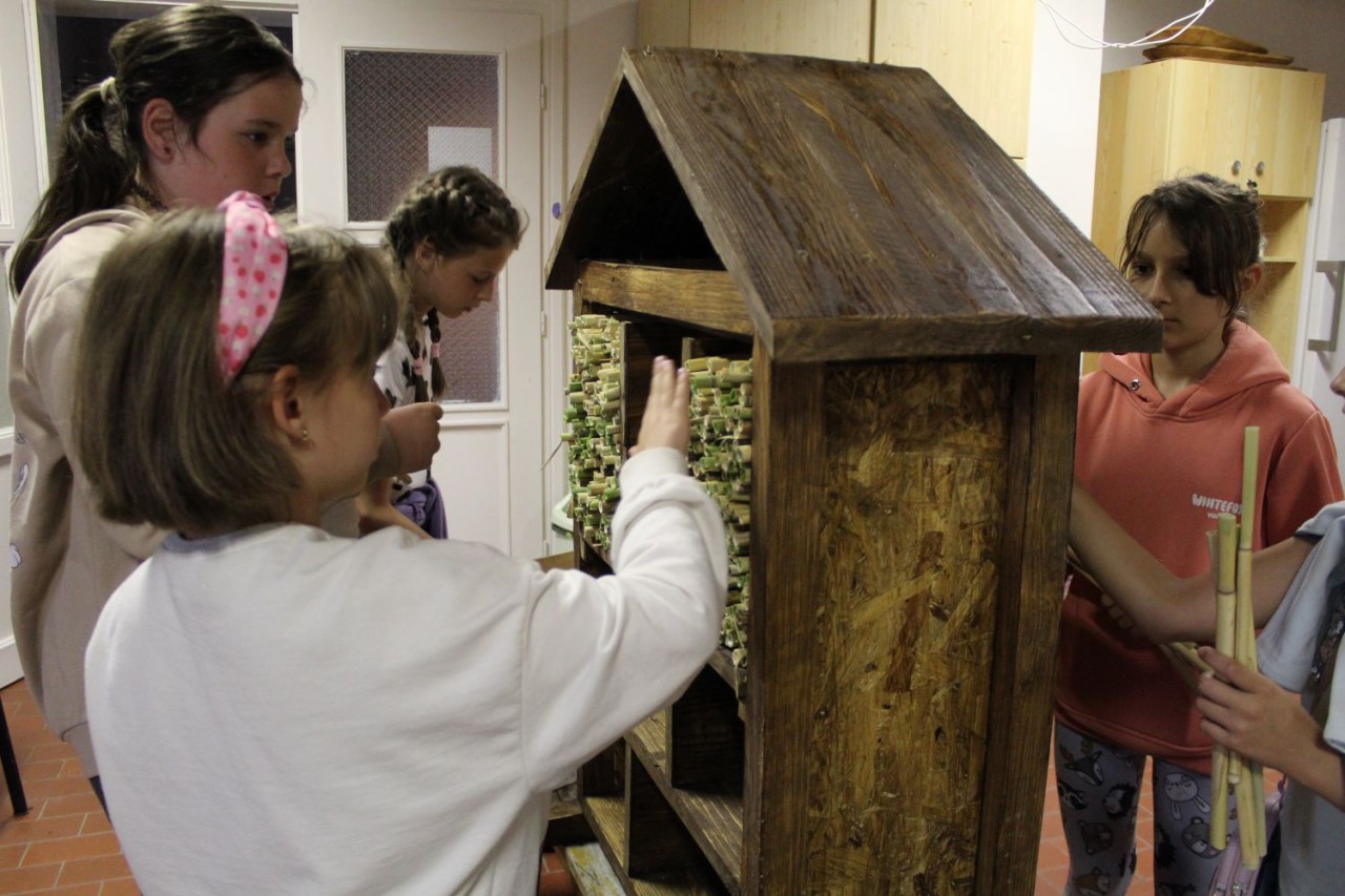 A helyismereti és olvasásnépszerűsítő napközi résztvevőivel ellátogattunk a Tiszatáj Közalapítvány Szamárháti Látogatóközpontjába, ahol Lenner Ádám természetvédelmi- és tájgazdálkodási menedzser irányításával készítettünk egy szuper rovarhotelt. A szállást a „Villa Scederkyn" Tájház udvarán helyeztük el.