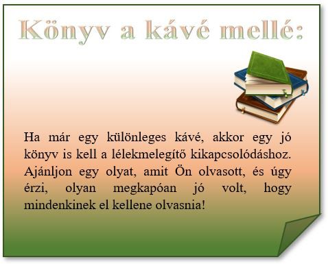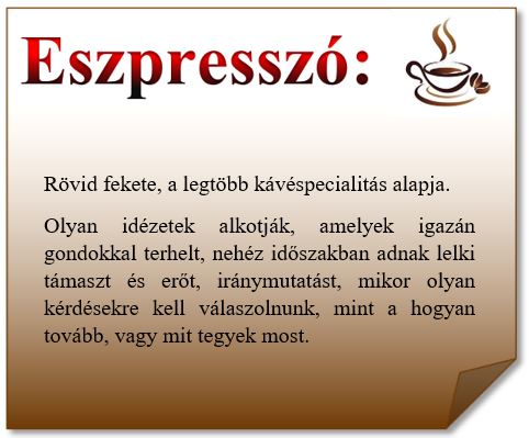 Szeretettel meghívjuk a Gondolat Kávézóba! Váljon Ön is kávémesterré, és készítsen velünk különleges „gondolt" kávét! Ugyan most még csak virtuálisan, de amint a könyvtár újra kinyit, személyesen is várjuk Önt és barátait. Addig is legyen mester, írjon nekünk gondolatokat, idézeteket, hiszen ezekből lesznek a finom kávék! Lássuk is hogyan!