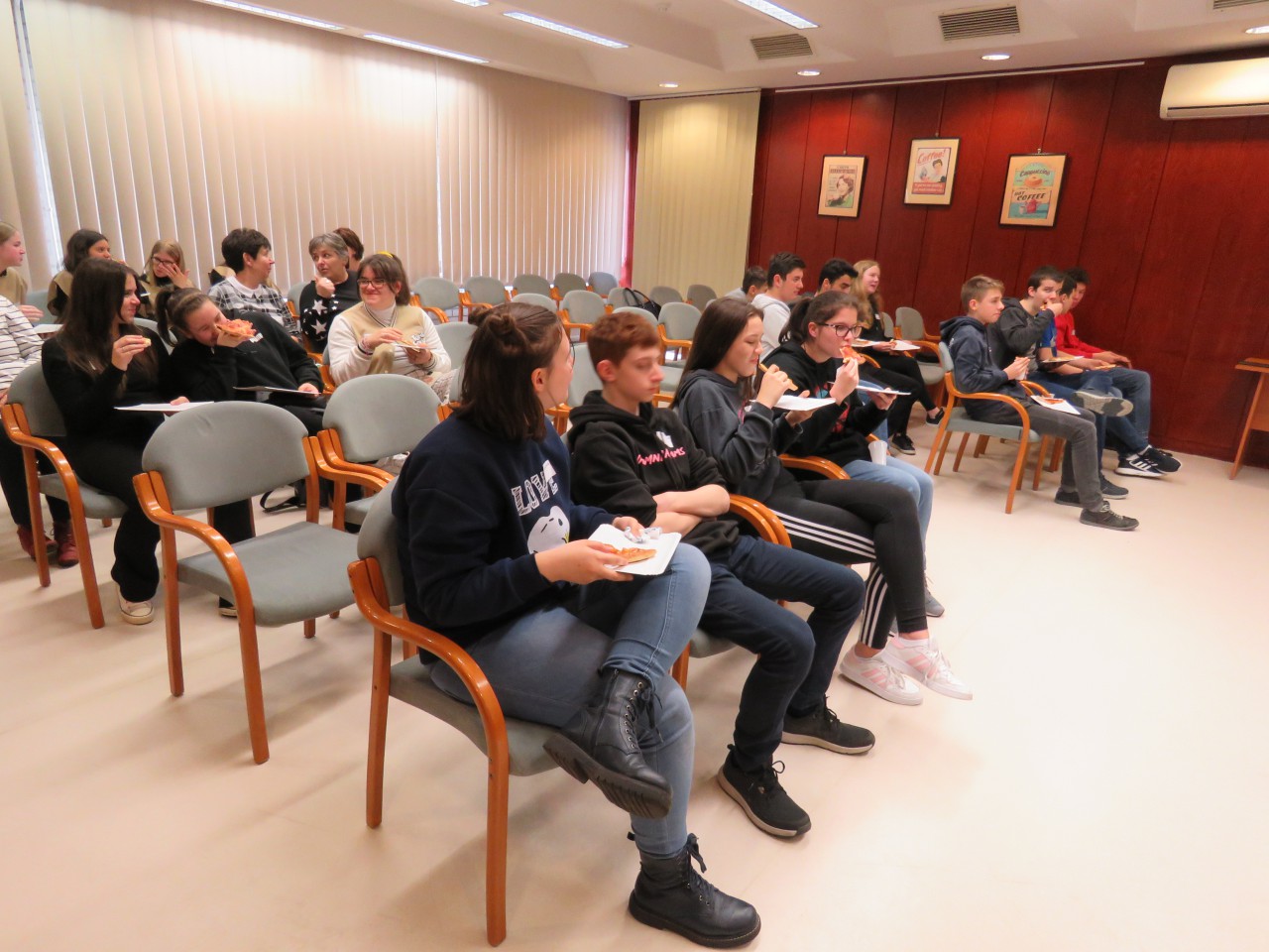 A mintegy másfél órás játékos akadályverseny végén a diákokat megvendégeltük 1-1 pizzára, miközben izgatottan várták az eredményhirdetést. Az irodalmi akadályversenyen minden csapat kitűnően helytállt, így jutalomban is részesült. Gazdára találtak a Scarpa étterem pizza utalványai és az Angyal Sport klub bowling ajándékkuponjai is.