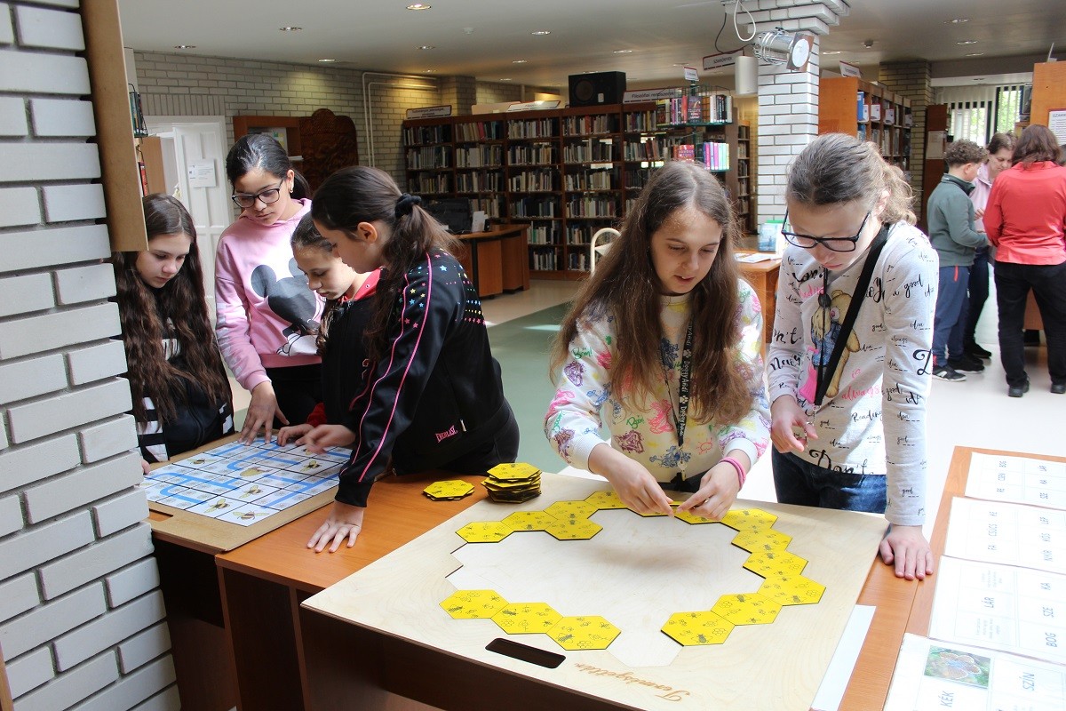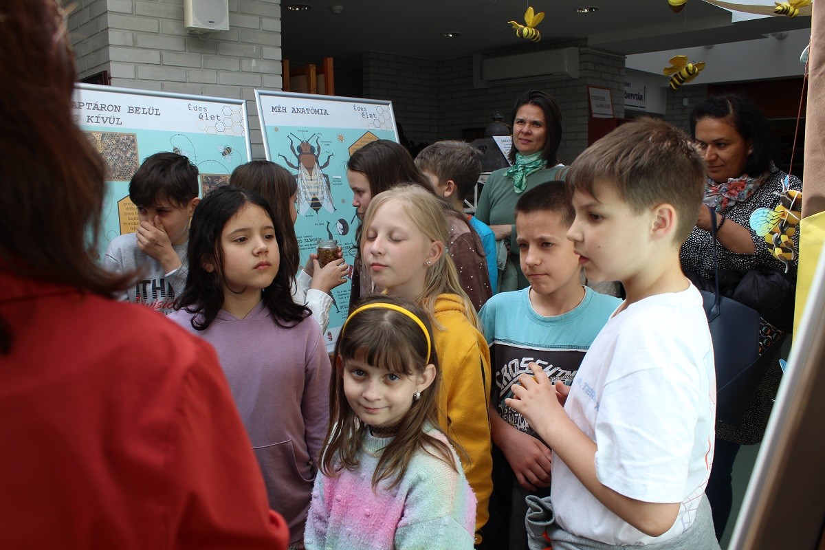 Könyvtárunkban már hagyománnyá vált, hogy szolgáltatásainkkal kapcsolódunk a Köznevelési Témahetekhez. Nem volt ez másképp áprilisban sem, amikor méhek lepték el a könyvtár földszintjét.