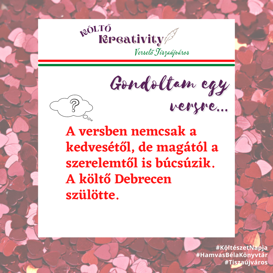 A MAGYAR KÖLTÉSZET NAPJA alkalmából kreatív vers- és képzőművészeti alkotás készítésére hívjuk olvasóinkat.