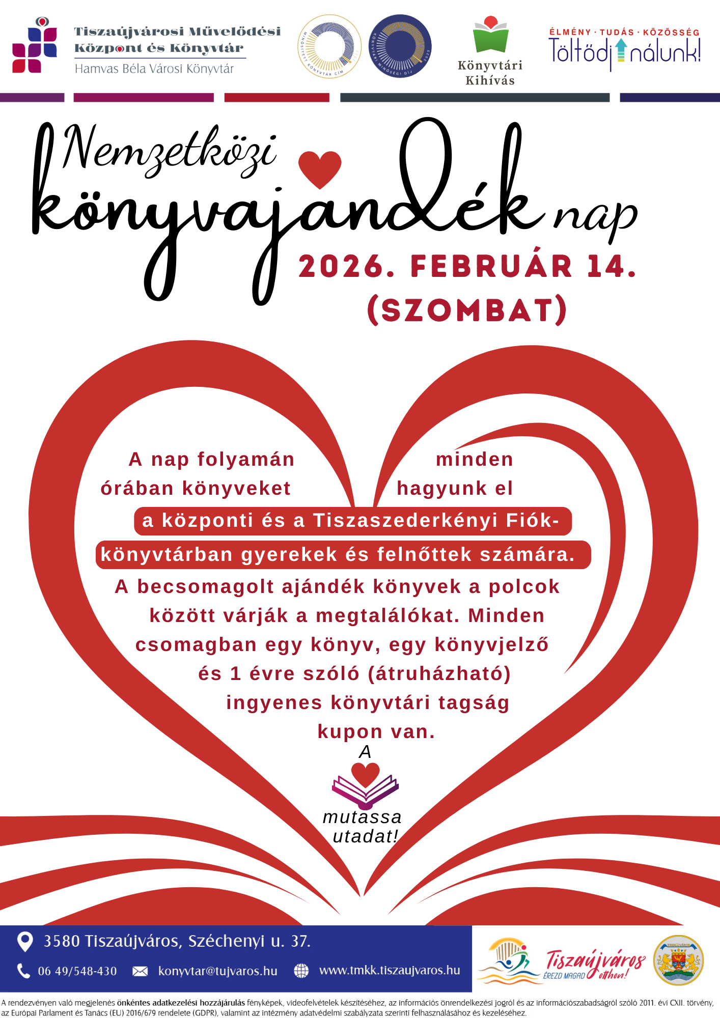 Gyertek el hozzánk, kölcsönözzetek, vegyetek részt a játékban, és mutassuk meg együtt: Tiszaújváros olvas! 💙💛