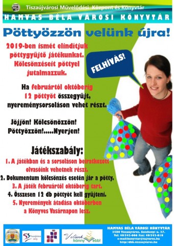 2019. februárjában indítottuk útjára "Pöttyözzön velünk újra" nyereményjátékunkat, mely során minden kölcsönzést pöttyel jutalmaztunk. A részvételi feltétel az volt, hogy beiratkozott olvasóink februártól októberig 12 alkalommal éljenek a ...
