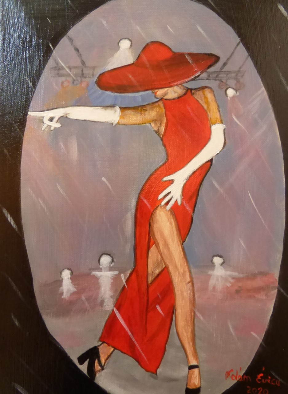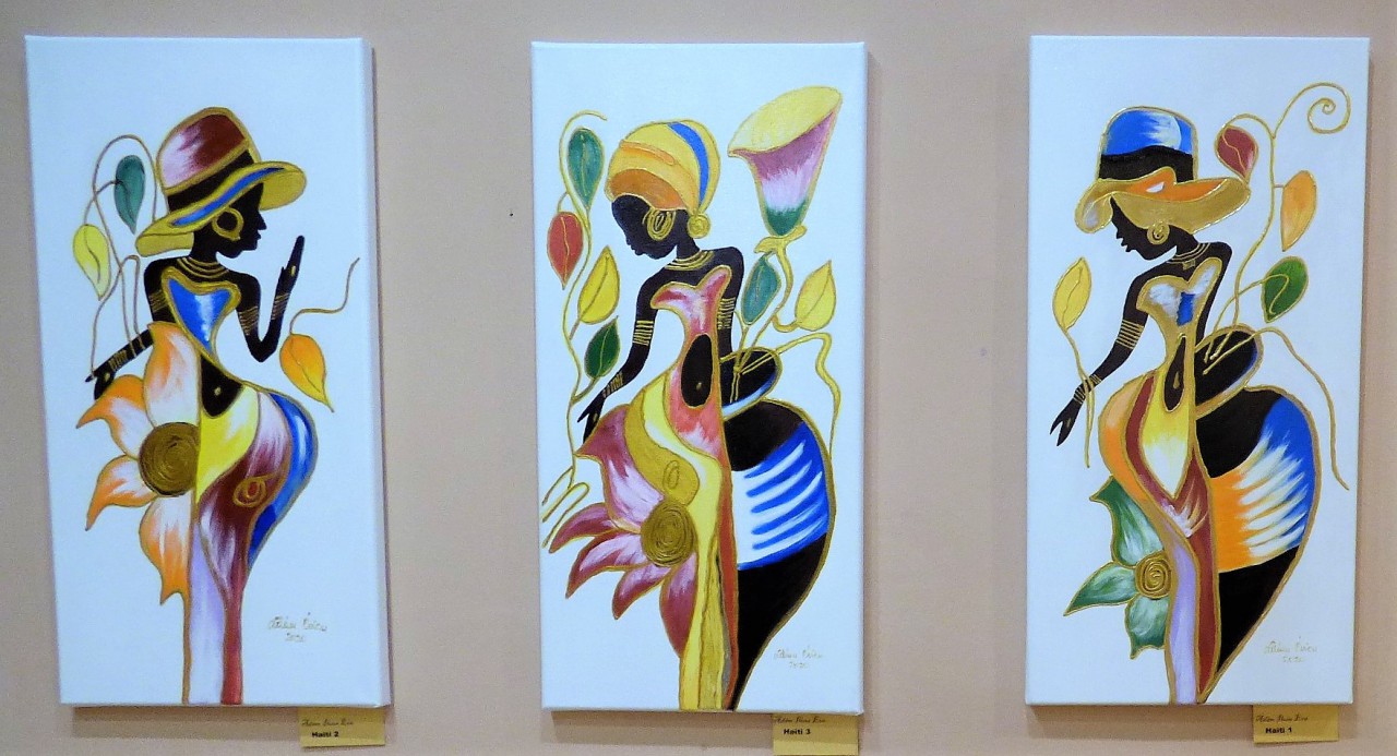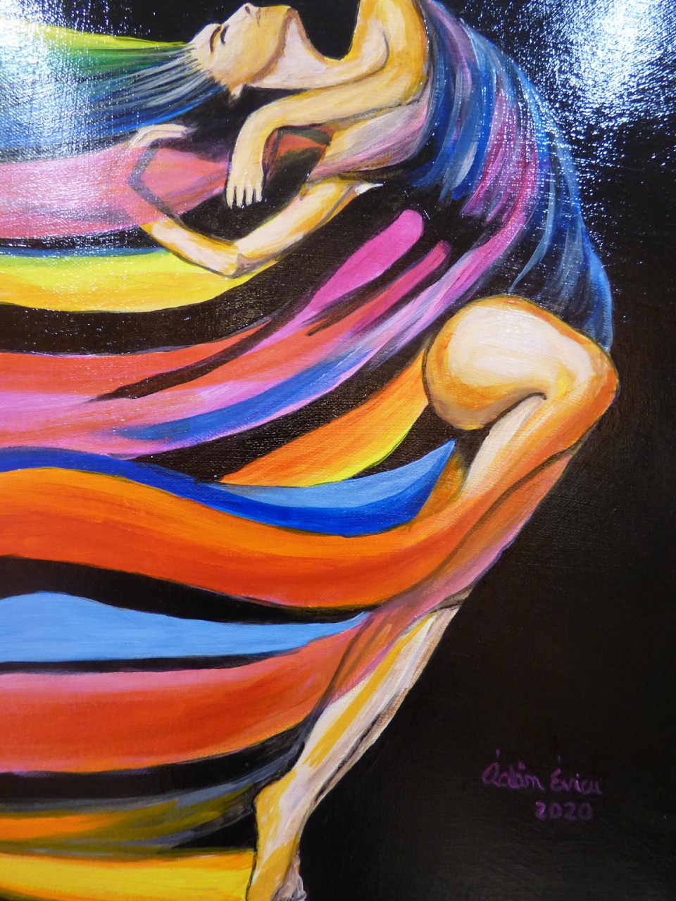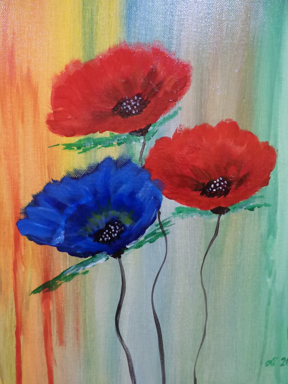 A képeimet akrillal festem. Szeretem az élénk, erős színeket. Általában a „Pinteresten" megtetszett képeket festem meg, de festettem már szalvétán látott képet is /Gésa/, vagy egy falon lógó festményt, ami nagyon megtetszett /Haiti nők/.