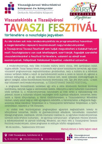 Az idei évben sok más rendezvényünkhöz és programunkhoz hasonlóan a megérdemelten népszerű összművészeti nagyrendezvényünket, a Tiszaújvárosi Tavaszi Fesztivált sem tudjuk megvalósítani a kialakult helyzet miatt. Nosztalgiázásra van csak lehető...