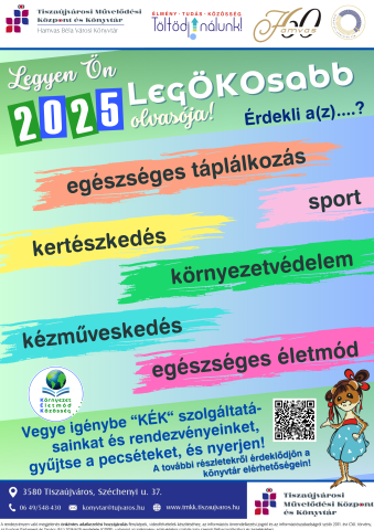 2025-ben újra játékra hívjuk Önt! 10 hónapon keresztül 10 kvízt kell megfejtenie környezet-, természet-, állatvédelem, életmód és közösség témában. Mivel a könyvtárunk idén ünnepli a 60. születésnapját, így havonta 6, összesen 60 kérdést fo...