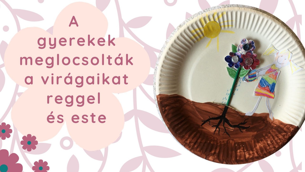 ? A papírtányéron kivágunk egy rést a föld vonalában, olyan szélesen, hogy a virágot ki tudjuk dugni rajta. Illesszük be a virágot a résbe, és a pálcikával toljuk egyre felfelé, hogy lássuk milyen szépen megnő, ha elegendő vizet és napfényt kap.