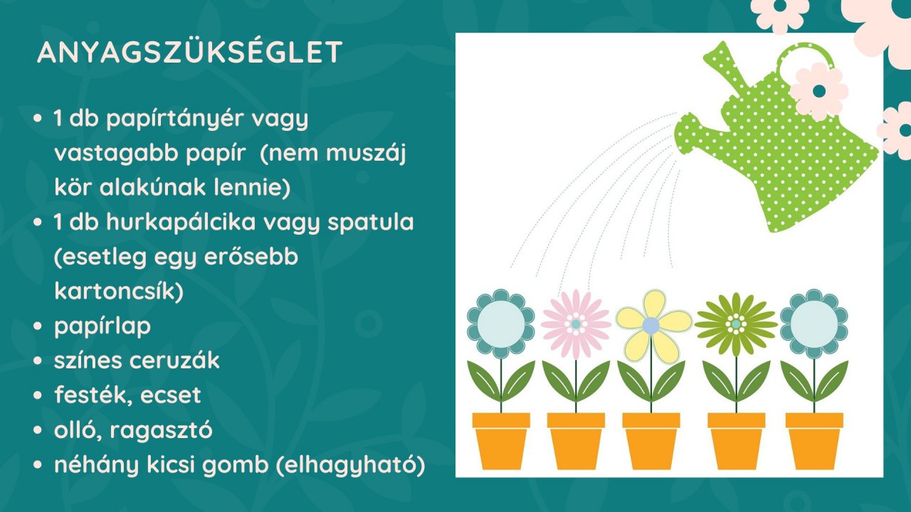 Ezen a héten A kisfiú meg az üres virágcserép című koreai mesét hallgathatjuk meg. A tavasz és a megújuló természet kapcsán pedig többféle virágültetős játékot készíthetünk, hogy egy kicsit virágba borítsuk otthonunkat is. Persze aki teheti, ültessen a gyerekekkel igazi virágokat is a kertbe vagy az ablakpárkányra!