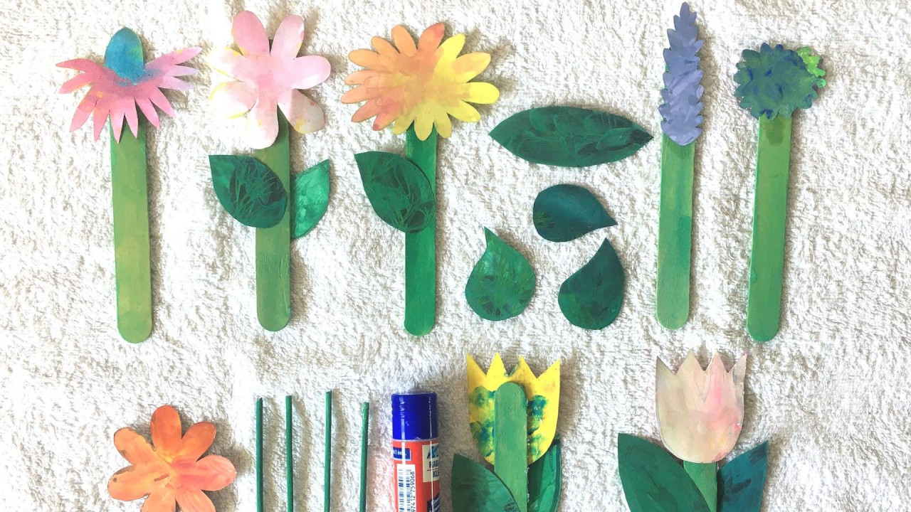 ? Vágjuk körbe a virágokat és fessük be mindkét oldalukat színesre. (Ha a gyerekek nincsenek oda a festésért, viszont ügyesen vágnak már, akkor színes papírból vagy akár színes újságból is meg lehet csinálni a virágokat. Én a kiscsoportos fiammal alkottam meg ezt a kertet, aki nagyon szeret festeni, a vágásban viszont még van hova fejlődnie, úgyhogy ez alapján osztottuk fel a feladatokat.)