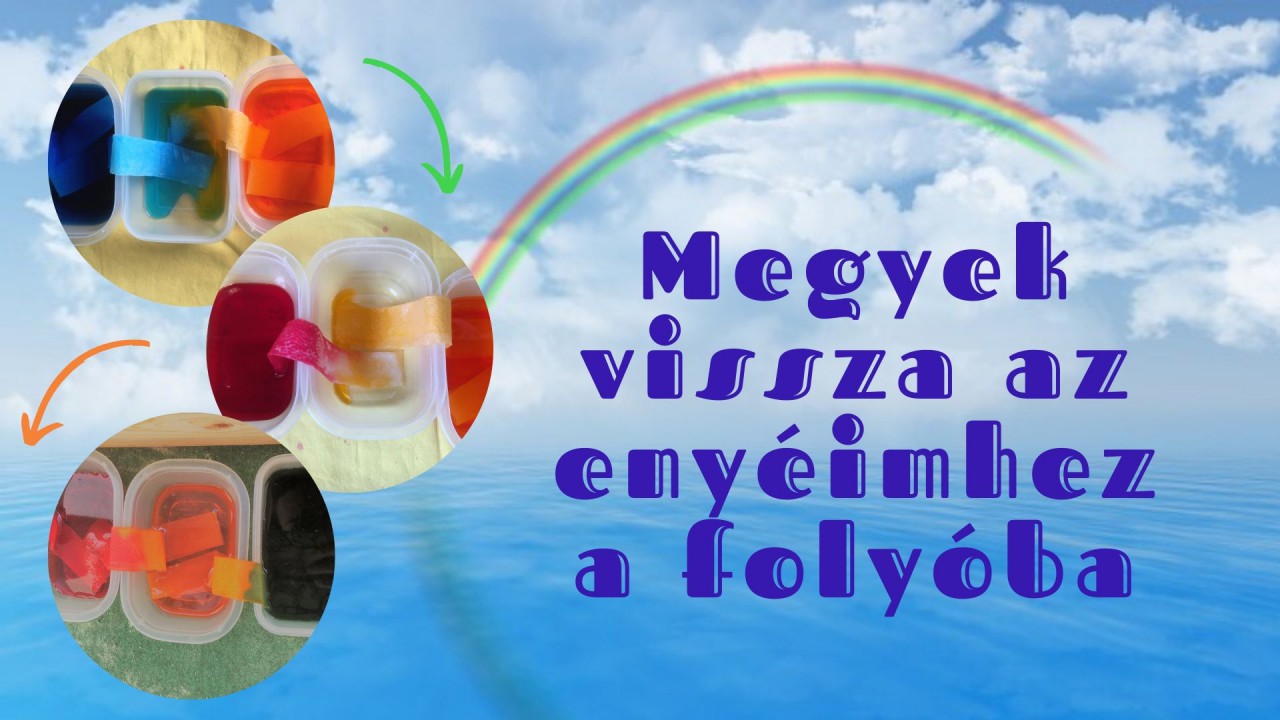 ? Ennek a kísérletnek a során két dolgot is megfigyelhetünk. Egyrészt, hogy hogyan jut át a víz egy papírcsíkon keresztül egy olyan edénybe, amely eddig üres volt, másrészt, hogy a színek hogyan keverednek egymással és milyen új színeket hoznak létre. Érdemes olyan helyre tenni, ahol nem lesz útban, mert nekünk például kellett egy nap, mire a csíkok is szivárványszínűvé váltak, úgyhogy mi kiraktuk az erkélyre és időnként ránéztünk, hogy hogy áll éppen a víz.
