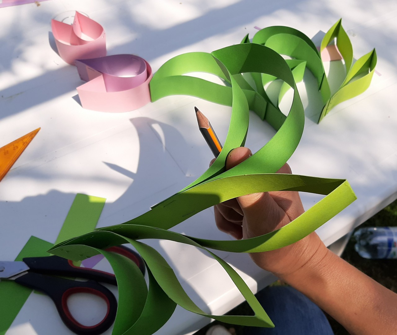 ? Az üres részeket kitölthetjük a maradék zöld csíkokkal, melyeket egy ceruza segítségével pödörjünk meg.