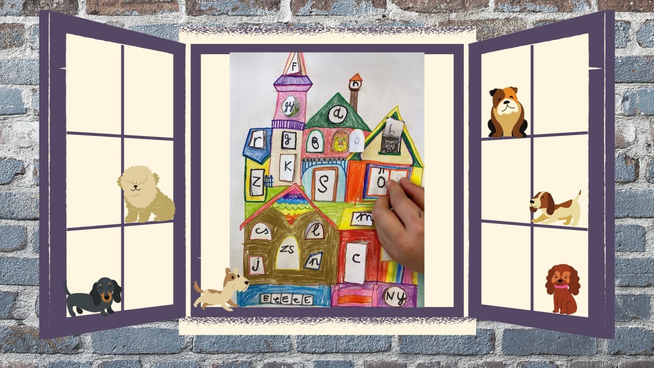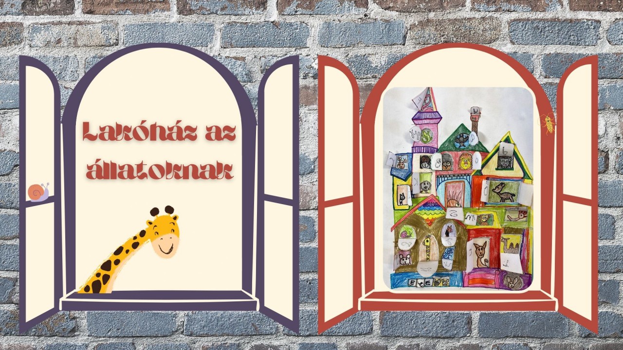 - Rajzoljunk be minden ablakba egy-egy (vagy akár több) állatot, a megfelelő kezdőbetűvel és színezzük ki őket. Nálunk jó néhány plusz ablak is került a házra, ahogy eszünkbe jutottak még különböző állatok. (Kisebb gyerekekkel úgy is készíthetjük, hogy nem betűket írunk az ablakokra, hanem olyanra színezzük, ami valamilyen módon jellemző az adott állatra, pl. a tehénnél fekete-fehér foltos.)