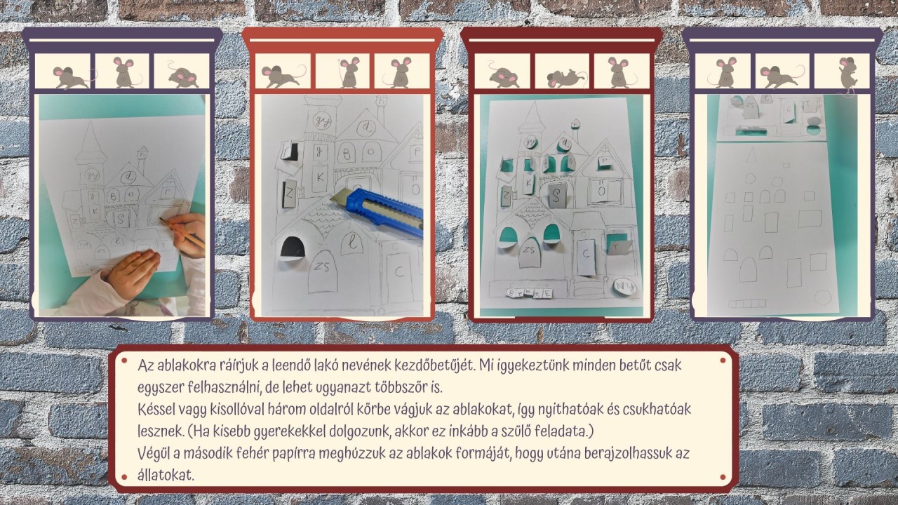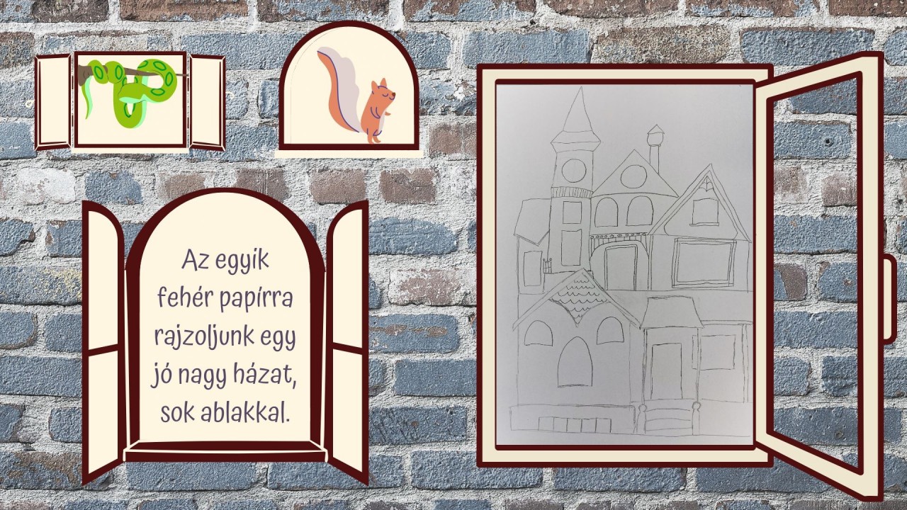 - Végül a második fehér papírra meghúzzuk az ablakok formáját, hogy utána berajzolhassuk az állatokat.