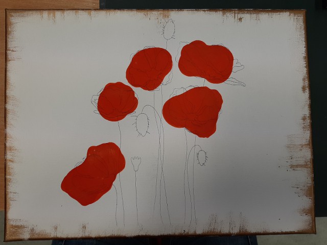 ? Ahol a virágfejek helyezkednek el, oda szabálytalan foltokat festünk, tetszőleges színválasztással.