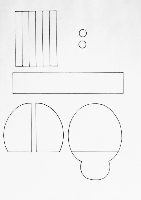 ? A katica sablonját a képek között megtaláljátok. Ha kinyomtattátok, vágjátok ki, majd amint a mellékelt ábra mutatja, rajzoljátok rá az adott formát az adott színű kartonra.