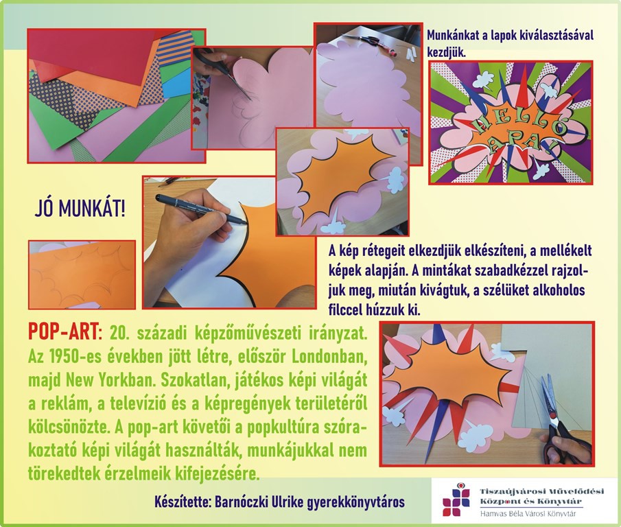 POP-ART: 20. századi képzőművészeti irányzat. Az 1950-es években jött létre, először Londonban, majd New Yorkban. Szokatlan, játékos képi világát a reklám, a televízió és a képregények területéről kölcsönözte. A pop-art követői a popkultúra szórakoztató képi világát használták, munkájukkal nem törekedtek érzelmeik kifejezésére.