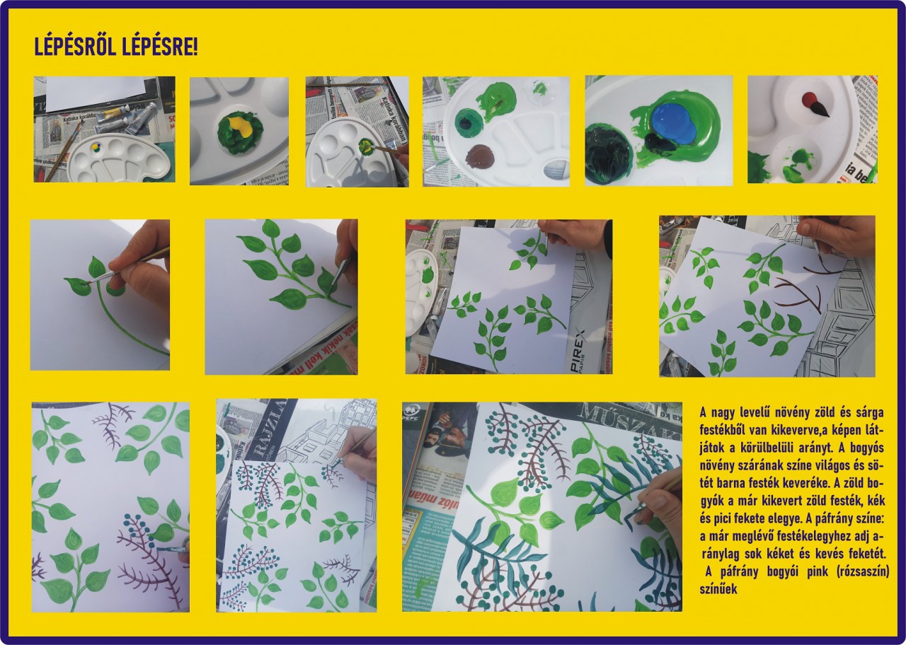 ? A nagy levelű növény zöld és sárga festékből van kikeverve, a képen látjátok a körülbelüli arányt.