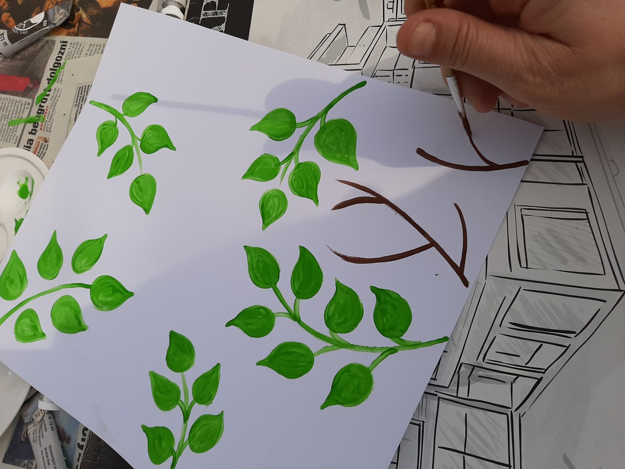 ? A zöld bogyók a már kikevert zöld festék, kék és pici fekete elegye.