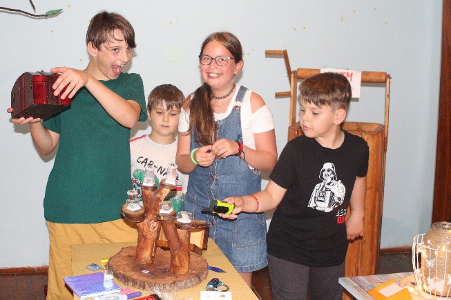 Pénteken ténylegesen el is utaztunk, ezen a napon ugyanis Kesznyétenbe mentünk, ahol a KULCS szabadulószobában egy mesés feladvány megoldásában próbálhatták ki magukat a gyerekek.