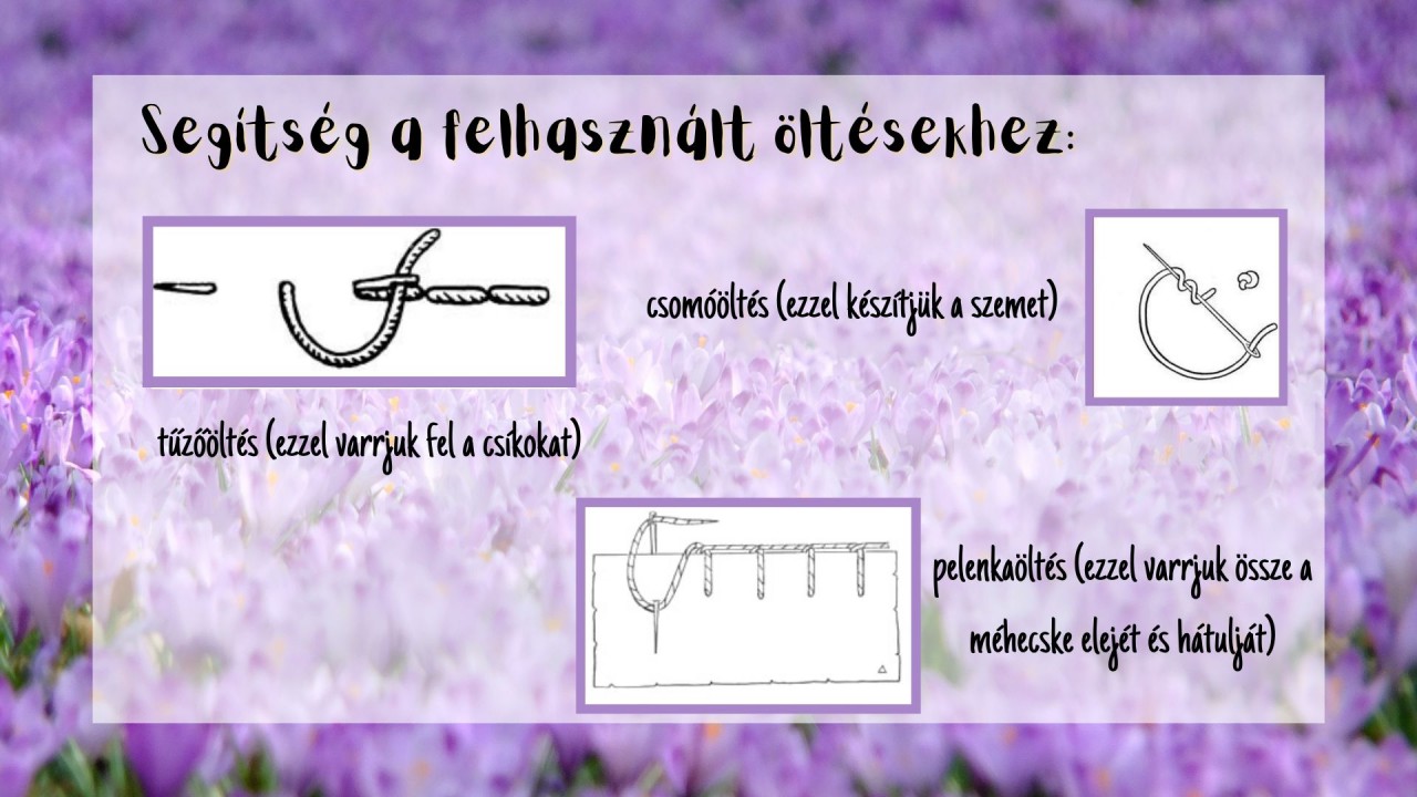 Rajzolunk egy méh formát, csíkokkal és szárnyakkal együtt. A testet sárga, a csíkokat fekete, a szárnyakat pedig kék vagy fehér barkácsfilcből vágjuk ki. A méh testét két példányban készítsük el.