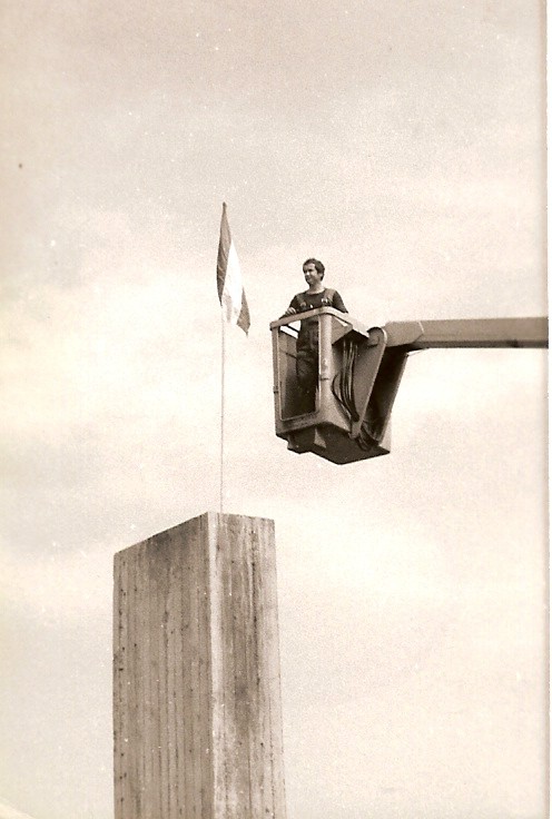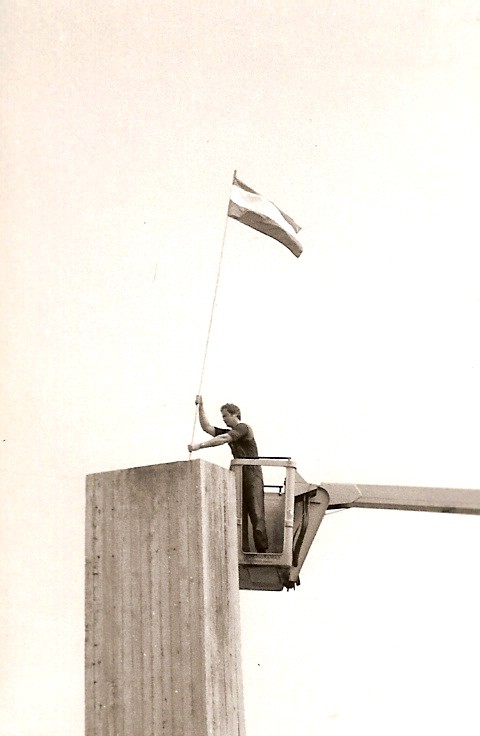 „1990. június 12-én a reggeli órákban eltávolították a Lenin fejet talapzatáról, azóta nemzeti zászlót lenget ott a szél."[6]