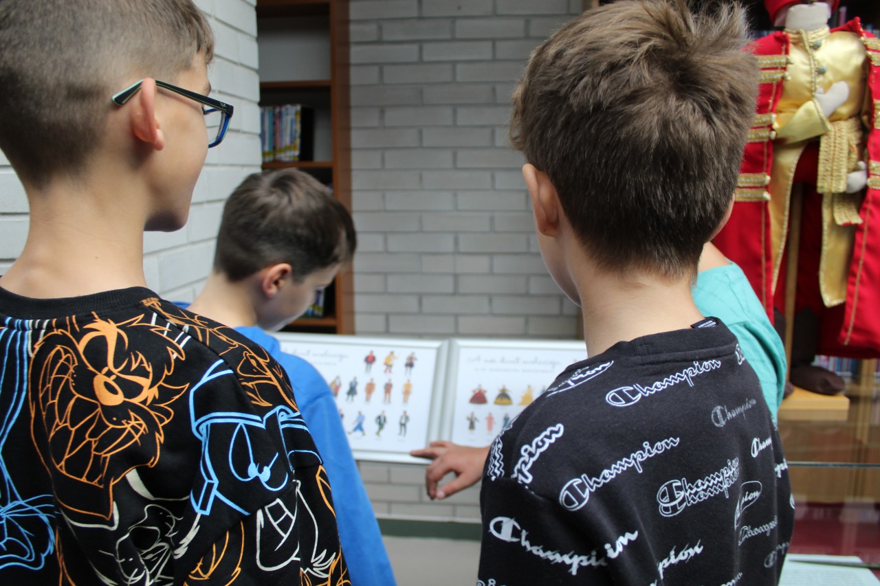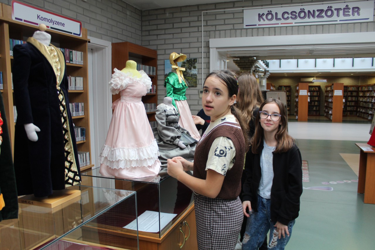 Október 14-én a Szent István Katolikus Általános Iskola hatodik osztályos diákjai vettek részt Ruha-tár című kamarakiállításunkhoz kapcsolódó foglalkozásunkon. A diákok először igen ügyesen, a könyvtári jelzetek adta segítséget is kihasználva megfejtették, melyik kosztüm, melyik irodalmi szereplőt/szerzőt rejti. Ezután a papír öltöztetős babákon keresztül ismerkedtek a különböző divattörténeti korszakokkal, majd a férfi és a női divat evolúciós idővonalán próbáltak rendet tenni.