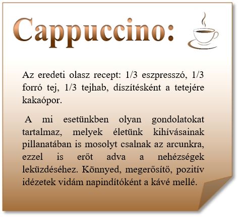 Szeretettel meghívjuk a Gondolat Kávézóba! Váljon Ön is kávémesterré, és készítsen velünk különleges „gondolt" kávét! Ugyan most még csak virtuálisan, de amint a könyvtár újra kinyit, személyesen is várjuk Önt és barátait. Addig is legyen mester, írjon nekünk gondolatokat, idézeteket, hiszen ezekből lesznek a finom kávék! Lássuk is hogyan!