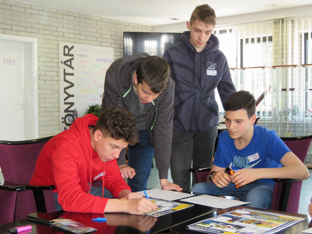 A mintegy másfél órás játékos akadályverseny végén a diákokat megvendégeltük 1-1 pizzára, miközben izgatottan várták az eredményhirdetést. Az irodalmi akadályversenyen minden csapat kitűnően helytállt, így jutalomban is részesült. Gazdára találtak a Scarpa étterem pizza utalványai és az Angyal Sport klub bowling ajándékkuponjai is.