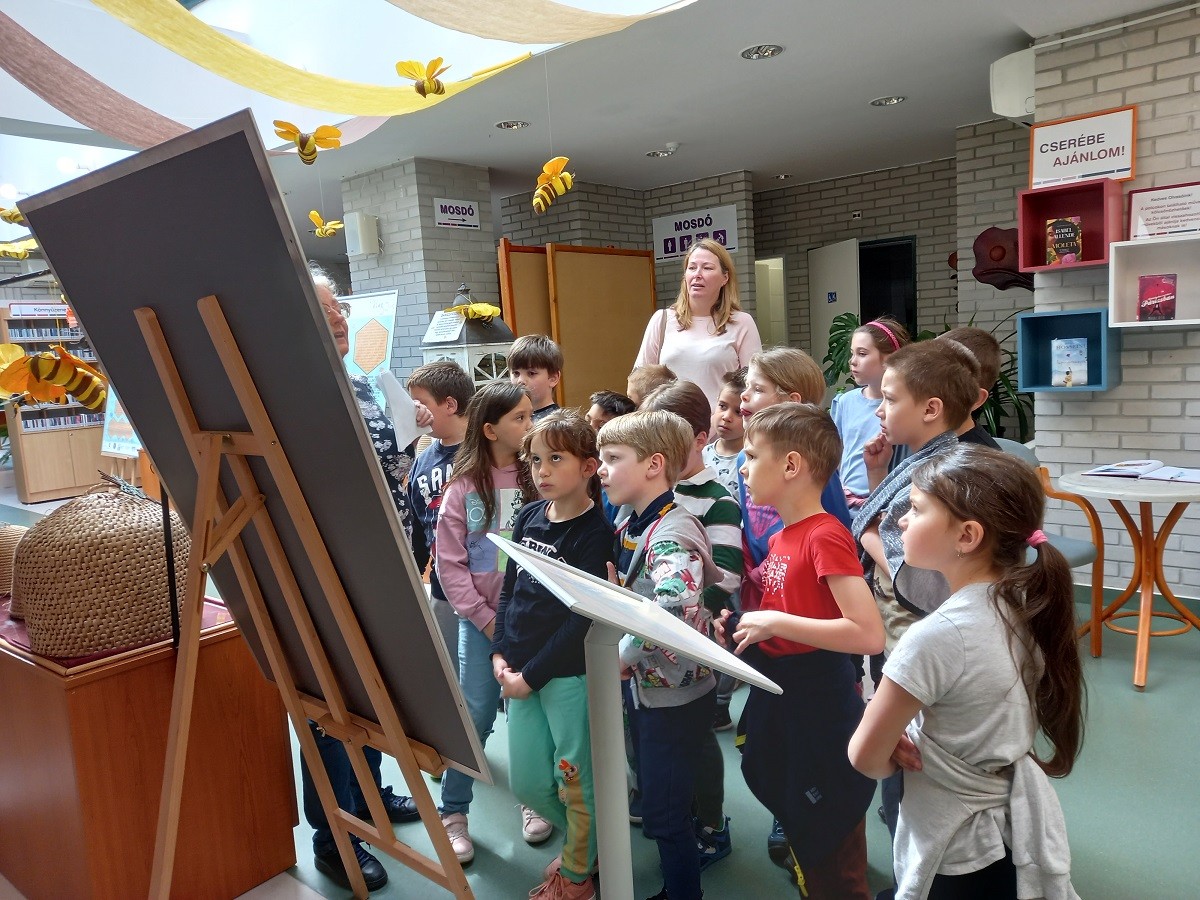Könyvtárunkban már hagyománnyá vált, hogy szolgáltatásainkkal kapcsolódunk a Köznevelési Témahetekhez. Nem volt ez másképp áprilisban sem, amikor méhek lepték el a könyvtár földszintjét.
