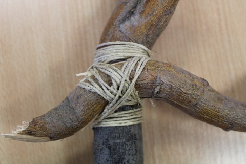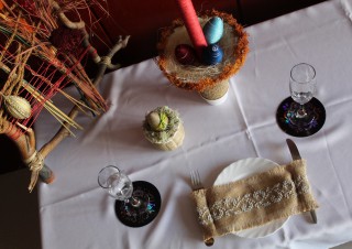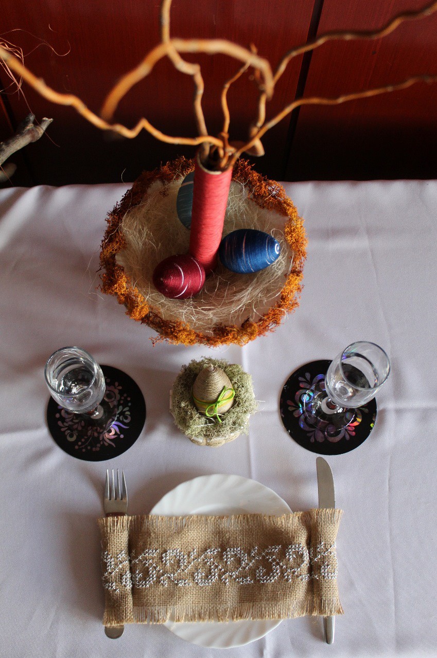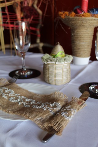 Az asztali dísz egy csavart fűz alapra kötözött, száraz növényekből álló dekorációs együttes.