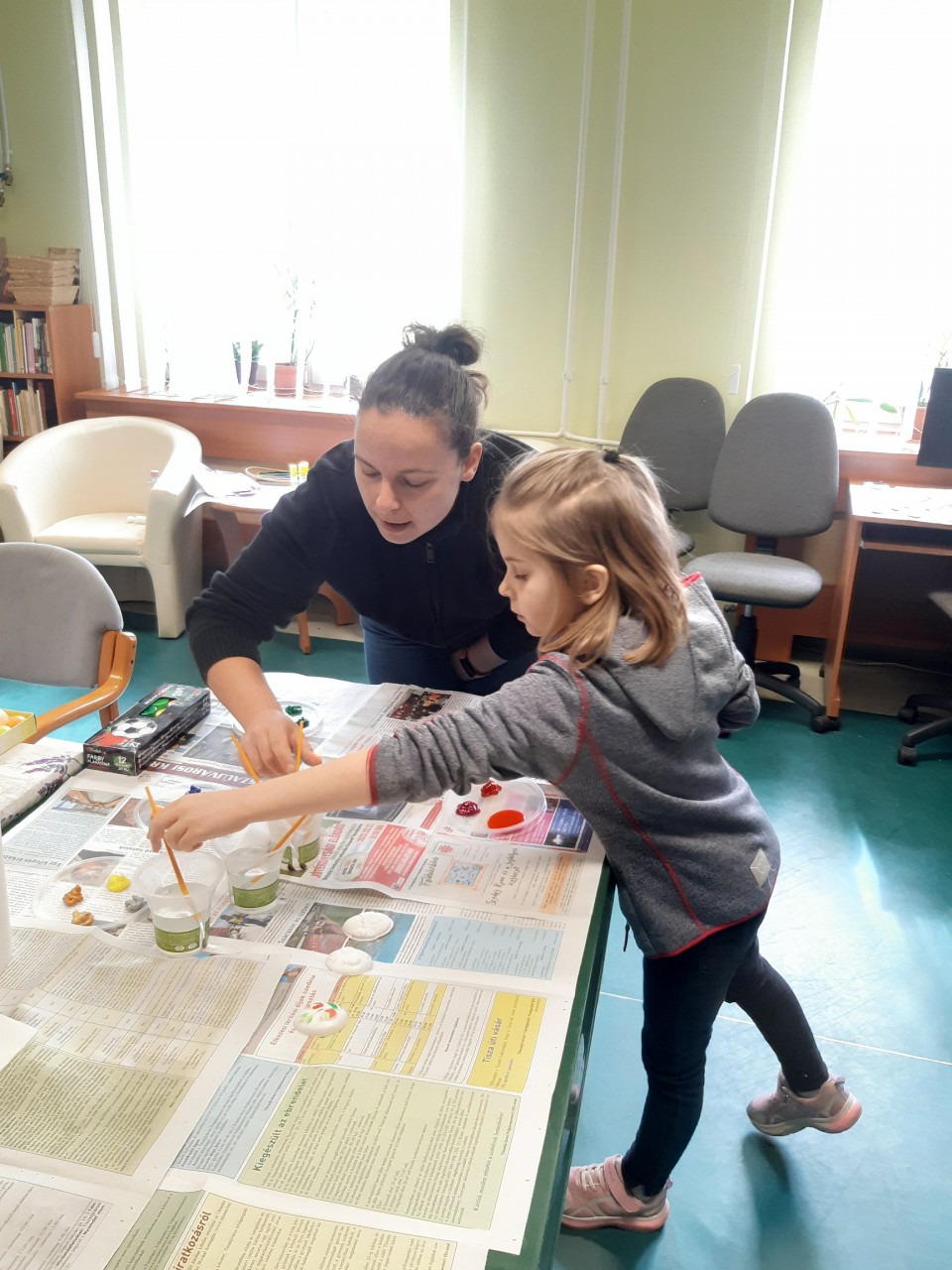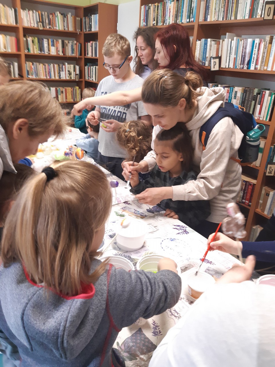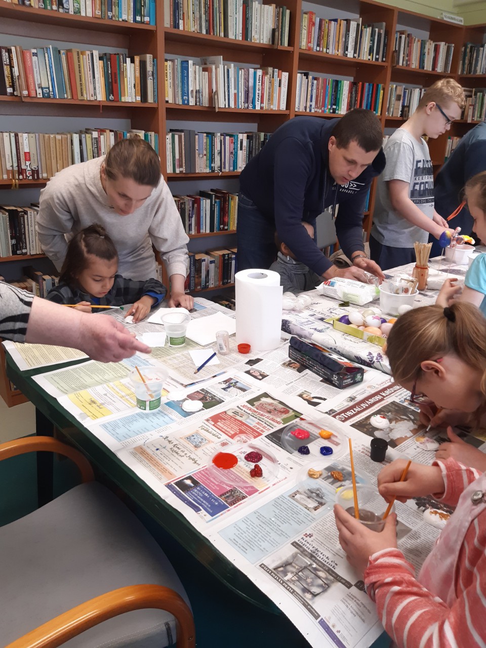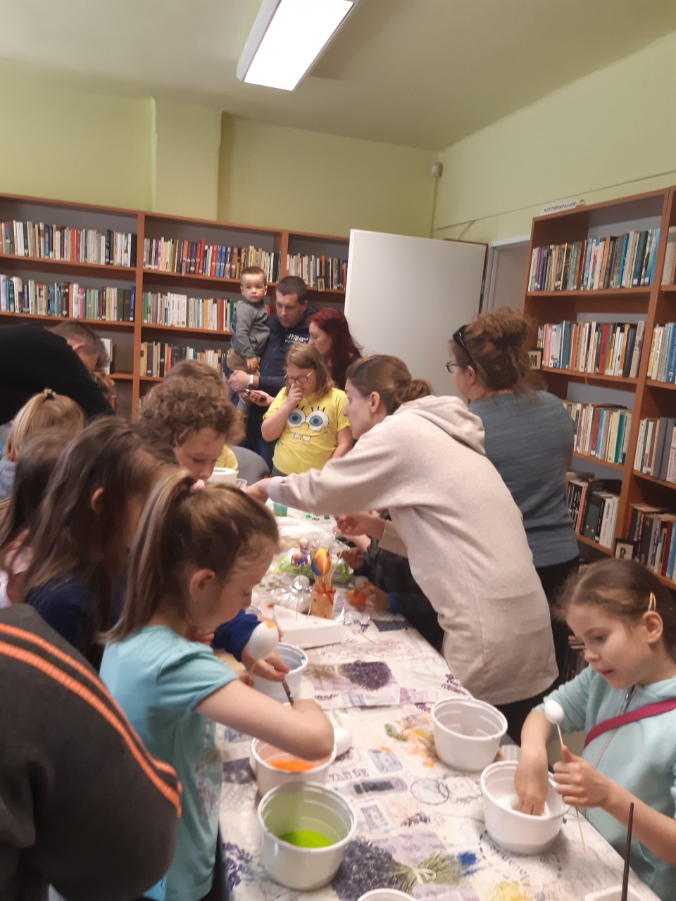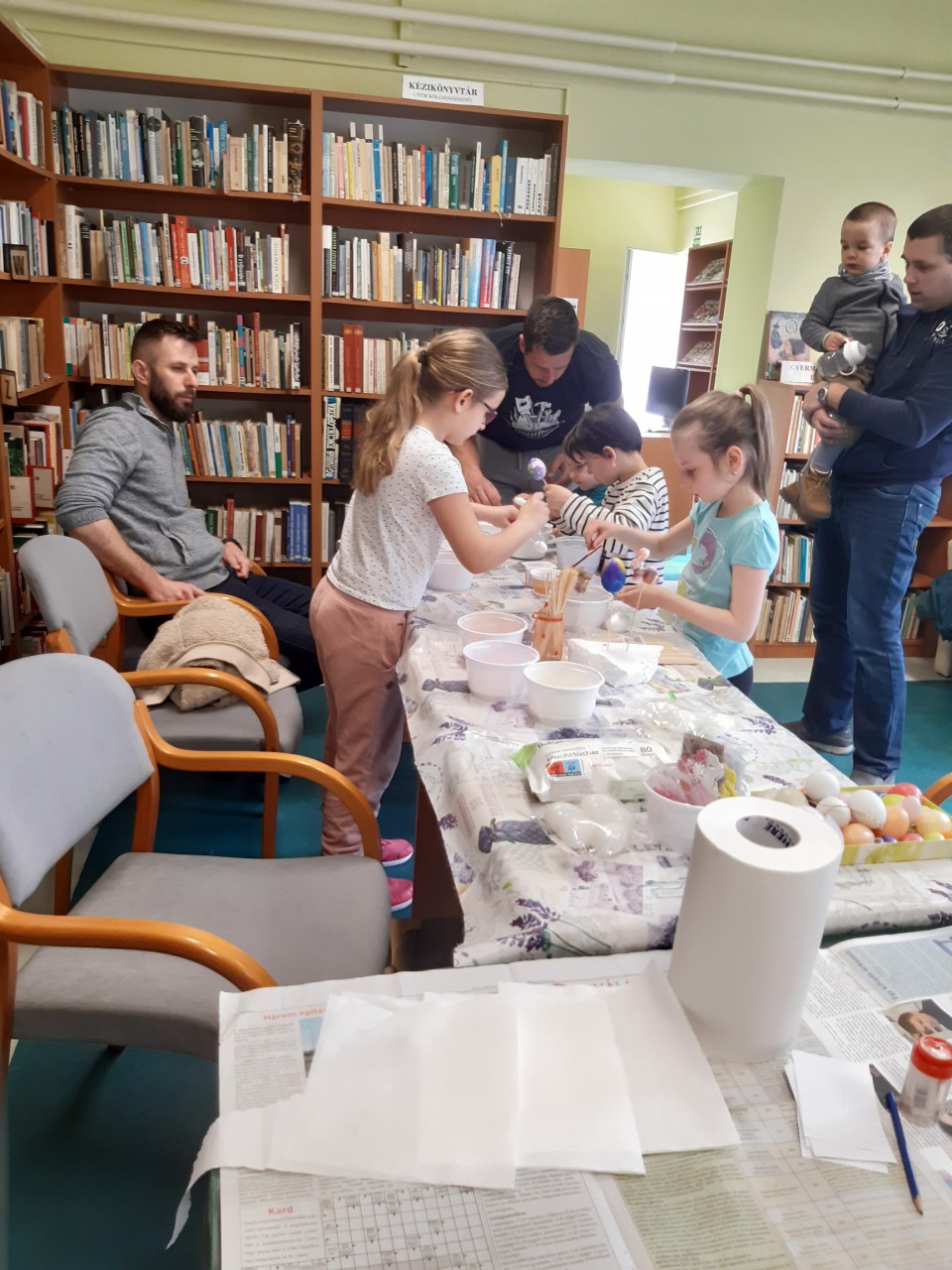 Húsvéti kézműves játszóházban készülhettek az ünnepre azok a gyerekek és szüleik, akik ellátogattak 2022. április 10-én a Tiszaparti Fiókkönyvtárba. A kézműves asztaloknál díszes tojások, húsvéti díszek és még sok más színes, tavaszi ötlet kelt életre a szorgos gyermekkezek által. Az ajándékokat a gyerekek örömmel vitték haza. Az alkotó délelőtt záró programja a tojásfa díszítés és a tojáskeresés volt. A fűben rejlő kincsek felkutatását a gyerekek nagyon élvezték. Kicsiknek és nagyoknak, gyerekeknek és szüleiknek, az egész családnak remek lehetőség volt arra, hogy belopják a mókát és a játékosságot valamint az ünnep hagyományait a mindennapjaikba.
