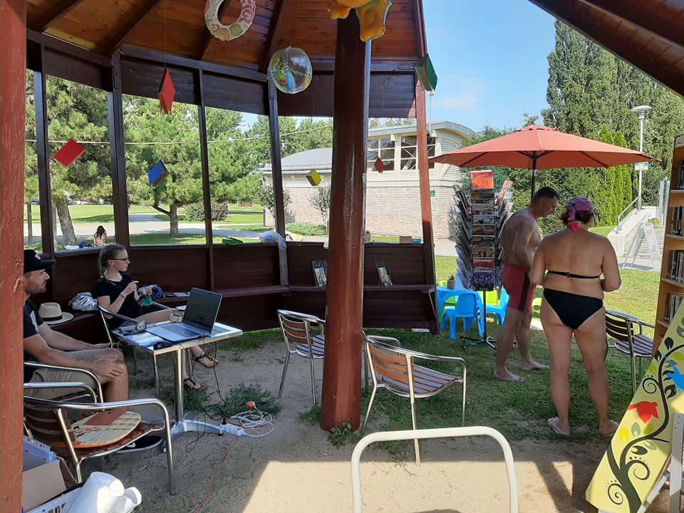 A strand vezetésének köszönet a teljes együttműködésért, a feltételek megteremtéséért, a fürdőzők igényeinek közvetítéséért. Bízom benne, hogy a támogatásukkal mi is hozzájárulhatunk a strand sikeréhez. Augusztusra forró nyarat kívánunk, és várjuk szeretettel a strandon is az olvasni és játszani kedvelőket.