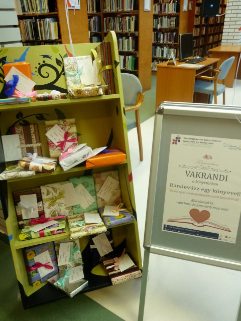 Az online társkeresés előtti világban vakrandinak azt nevezték, mikor egy ismerős, barát hozott össze két addig idegen embert, abban a hitben, hogy talán majd passzolnak egymáshoz. Most mi könyvtárosok léptünk a kerítő szerepébe, és próbáljuk olvasóinkat olyan könyvekkel összehozni, amelyek reményeink szerint elnyerik a tetszésüket. Persze a könyvek inkognitóban vannak, szép díszes csomagolásba rejtettük őket, csak néhány általunk megadott jellemző vonás árulkodik a tartalmukról, így valódi vakrandivá válik a találkozás. Természetesen nem csak romantikus könyveket választottunk lehetséges partnerként, arra törekedtünk, hogy mindenki találjon az ízlésének megfelelőt. Hiszen van, aki a könnyedséget kedveli, van aki a drámaiságot, van aki az izgalmat, van aki a titokzatost…